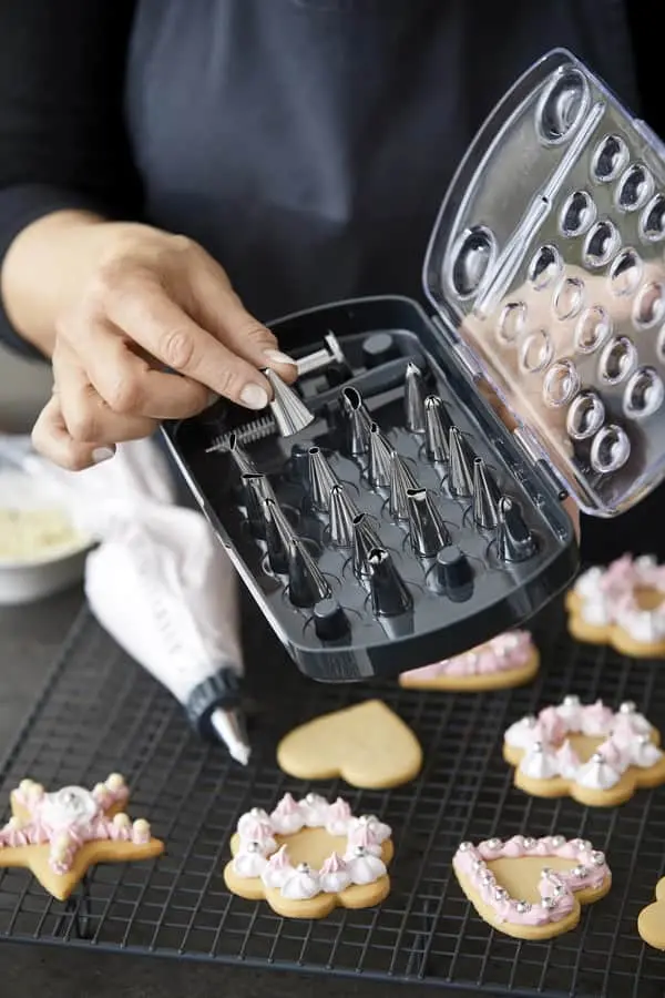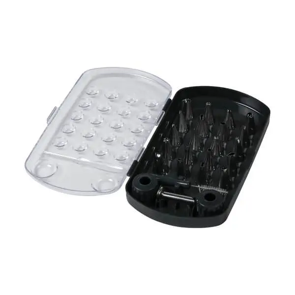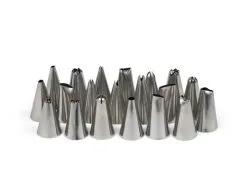 Træn din sprøjteteknik og lav smukke overdådige kager med dette tyllesæt fra Blomsterbergs. Du får 20 forskellige tyller, som passer til Blomsterbergs engangssprøjteposer. Brug tyllerne til at dekorere dine kage-mesterværker eller til at fylde dine vandbakkelser.Du får 20 forskellige tyller, som måler 3-4 cm, en berlinertyl i rustfrit stål, to tylkoblere og en rensebørste.