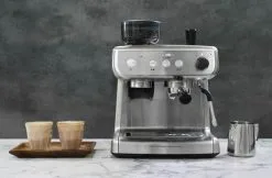 Få kaffebaren hjem i køkkenet med Barista Espresso Max fra Breville! Den forprogrammerede indstilling til enkel eller dobbelt espresso, kombineret med damprøret til skumning af mælk, gør dig til en fuldendt barista. Maskinen har desuden en indbygget kaffekværn, der maler kaffebønnerne i den størrelse, du vil have, lige inden du laver din kaffe. Alt sammen for at give dig en fyldig og aromatisk smag, som om kaffen blev serveret på en café.