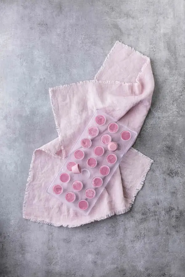 8. Giv formen et tvist og bank chokoladerne ud på køkkenbordet.
