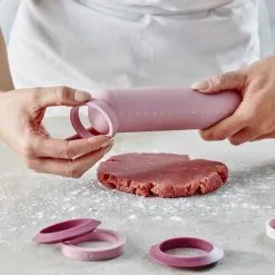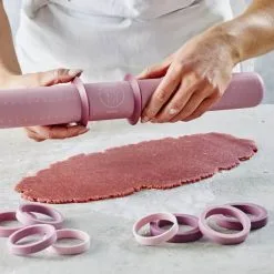 Multifunktionel kagerulle i silikone Inkl. afstandsringe og skæreringe Tåler opvaskemaskine