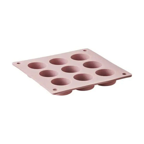 Silikoneformen med 9 huller har en diameter på 4 cm og formen med 6 huller har en diameter på 9 cm.