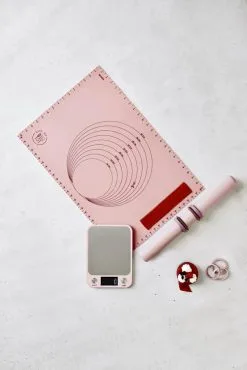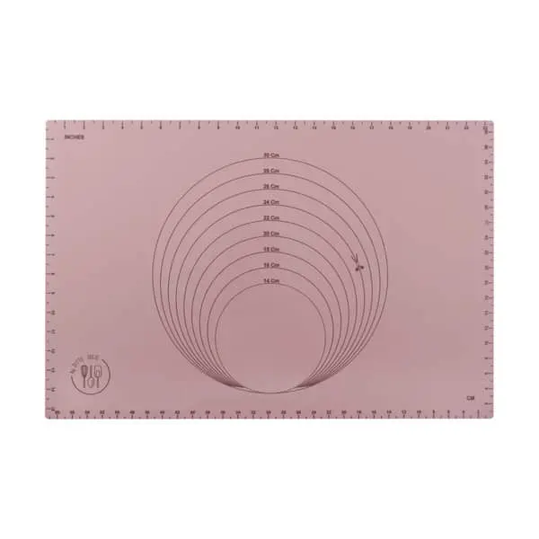 by Ditte Julie silikonemåtten er udstyret med måleenheder, så du nemt kan måle højden på dit marcipanbånd eller tærtedejens størrelse. Du kan både måle i cm og inches. Derudover har bagemåtten fortrykt 9 runde ringe med diameter fra 14 til 30 cm, samt linjemål, så du har optegninger til langt de fleste bageprojekter.
