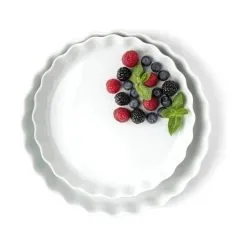 Bag lækre tærter med porrer og tomater eller server en desserttærte med syltet frugt og flødeskum i dette fadsæt fra Casa Living.