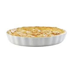 Ovnfast tærtefad fra CASA Living. Fadet tåler temperaturer fra -30° C til +250° C. CASA Living porcelæn er blandt det mest hårdføre på markedet og er udviklet til at modstå termisk chok. Det klarer derfor let en tur fra fryser til ovn eller grill. Porcelænet kan selvfølgelig også gå i opvaskemaskine, mikroovn og køleskab.
