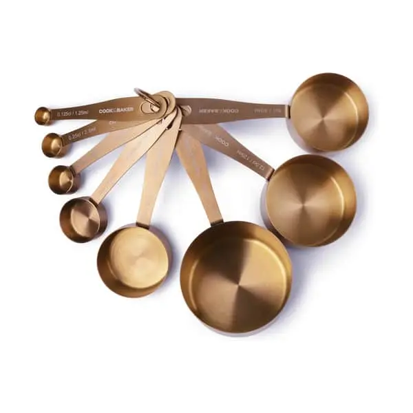 Et smart måleskesæt, som sikrer en hurtig og præcis afmåling af dine ingredienser i kobberbelagt rustfrit stål.