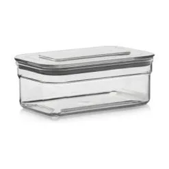 Opbevaringsboksene er fremstillet i klar plast med tætsluttende integreret gummipakning. Det betyder, at du nemt har overblikover dine råvarer i køkkenet og at de tilmed holder sig længe, da låget slutter tæt om boksen. Da de er stabelbare, kan du nemt fine opbevaringsplads i køkkenskabet.
