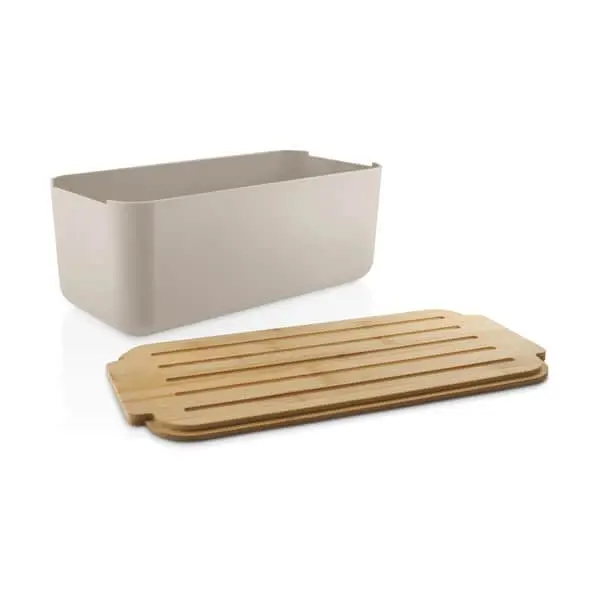 Brødkassen har et moderne og praktisk design. Har du fået lyst til et lækkert stykke brød, tager du blot bambuslåget af og bruger det som skærebræt. Desuden har låget praktiske riller, der fanger krummerne, når brødet skæres derpå.