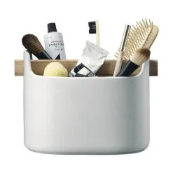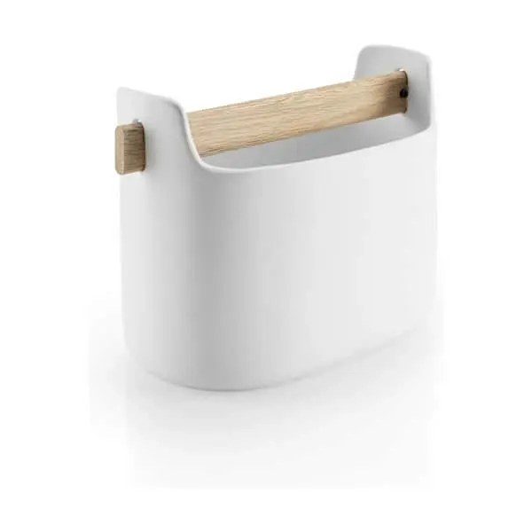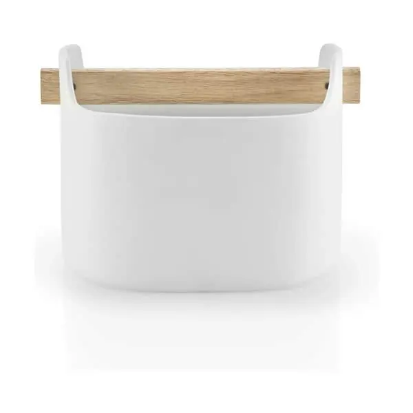 Få orden i din indretning med Eva Solos redskabskrukke. Den lave redskabskrukke er naturligvis oplagt til grydeskeer og piskeris, men den kan også bruges til at arrangere makeup, børster og mascara på badeværelset eller blyanter, saks og lineal på skrivebordet. Den lave redskabskrukke har et træhåndtag, så du let kan flytte krukken.