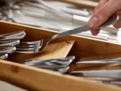 Åhh, hvor er den hvidløgspresser nu… Vi kender alle rodeskufferne i køkkenet, som roder sig selv til natten over. Med denne eksklusive bestikindsats i et bæredygtigt materiale skal dette være slut! Den er desuden yderst pladsbesparende i skuffen, da den kommer i flere lag, hvorved pladsen udnyttes optimalt!