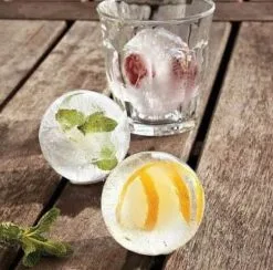 Det er kun fantasien, der sætter grænser for, hvilke ingredienser du kan putte i iskugleformen. Det kunne være limeskal, granatæblekerner, mynteblade eller frugtfarve for at skabe en særlig stemning. Iskugleformen kan levere 4 x XXL iskugler, der hver er 7 cm i diameter.