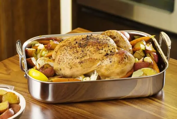 Du kan bruge bradepanden til mange forskellige retter. Du kan selvfølgelig lave din hele kylling med kartofler og rodfrugter, men du kan også bruge bradepanden til vandbad, bagning og til at stege hele fisk.