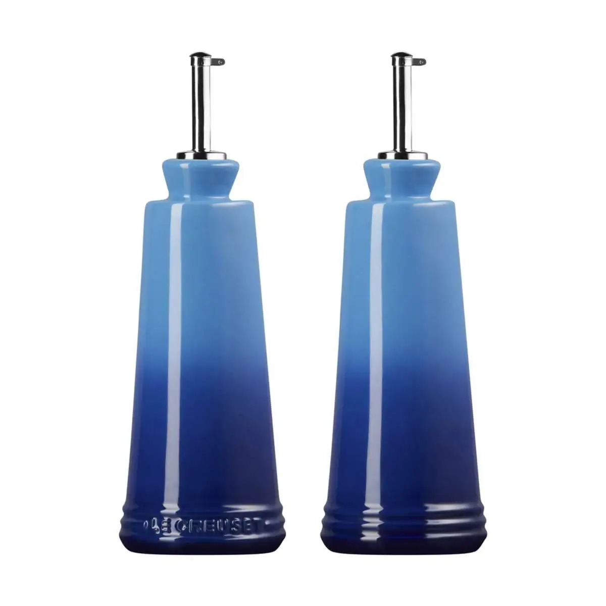 Forkæl dine sanser med dette fantastiske olie & eddikesæt fra Le Creuset – det perfekte tilbehør til ethvert køkken! Med sit moderne stentøj og brugervenlige hældetude i rustfrit stål, kan du nemt samle en lækker salat eller hælde olie på en varm pande. Med karaflernes to forskellige designs, kan du nemt kende forskel på dine foretrukne smagsvarianter.