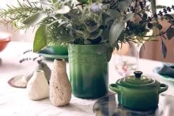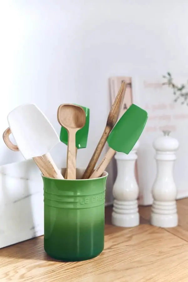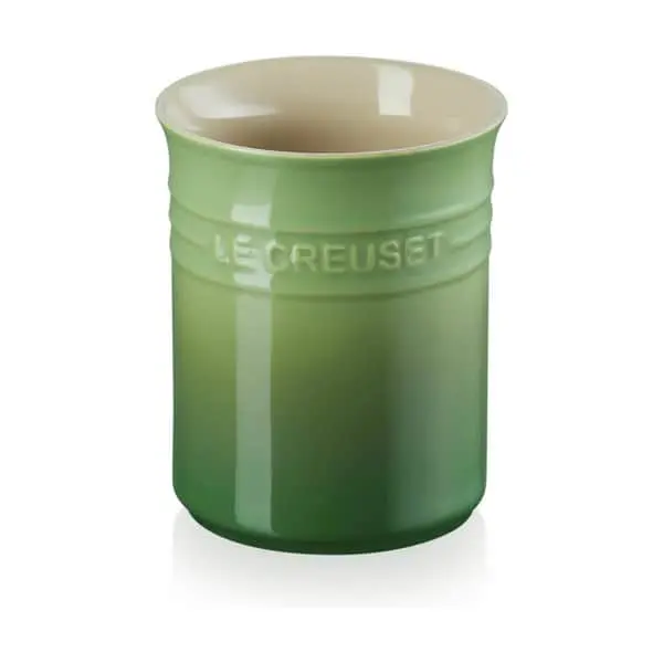 Ønsker du en mere ryddelig hverdag i køkkenet? Hold styr på dine grydeskeer og piskeris med den klassiske redskabskrukke i stentøj fra Le Creuset – her i den smukke Bamboo grønne farve, som vil bringe en skøn stemning af natur ind i dit køkken.