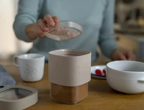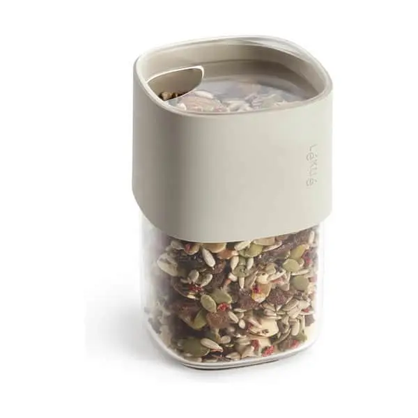 Har du de smarte opbevaringsbokse fra Lékuké, så kan du med fordel inkluderer disse to flip-storage tilbehør til samlingen for nemmere at tømme dine madopbevaringsbeholdere – et dryssetilbehør perfekt til kakao og et hældetilbehør med to åbninger (en til større ingredienser, en mindre) for at passe til et bredere udvalg af fødevarer.