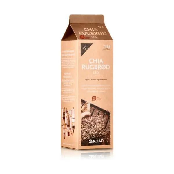 Ingredienser: Knækket rug*, groft dalarhvedemel*, fuldkorns rugsur*, chiafrø, rørsukker, ristet malt*, stensalt. (*Allergener)