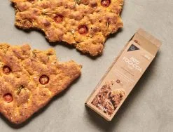Inspireret af italiensk madkultur får du her et Focaccia brød med et nordisk twist. Det består af fire forskellige økologiske danske melsorter som sammen med tomat granulat giver brødet en ekstra smagsdimension – Et perfekt supplement til aftensmaden!