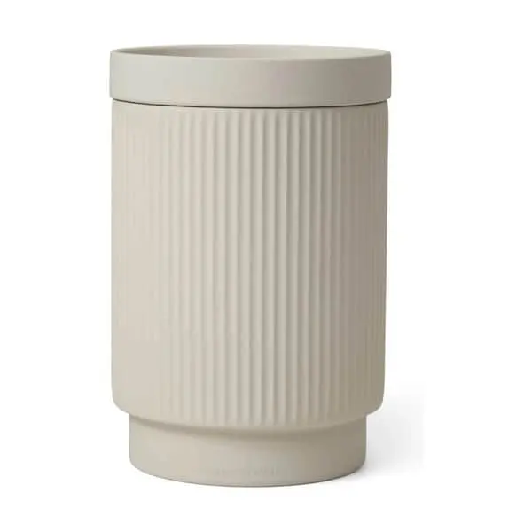 Vatrondeller, vatpinde, make up eller andet, der godt må kunne holdes styr på, men som ikke nødvendigvis behøver stå synligt fremme vil bo perfekt i denne fine beholder fra Marc O’Polo.