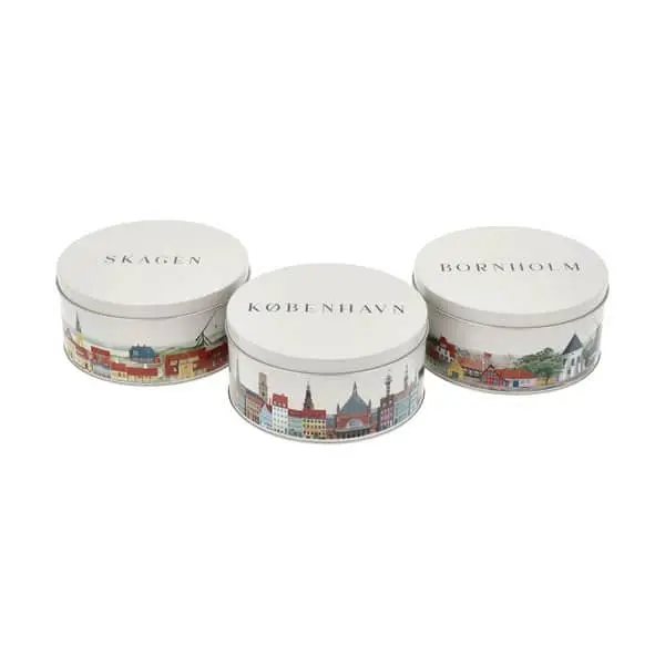 Elsker du at bage lækre cookies eller småkager? Så er dette fine kagedåsesæt bestående af tre runde dåser med danske motiver lige noget for dig.
