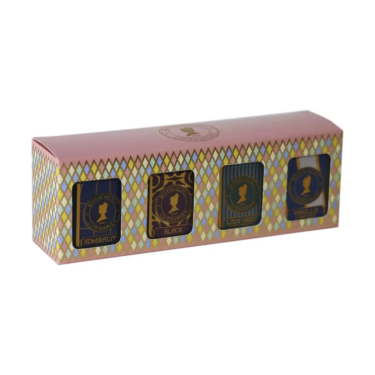 Te af højeste kvalitet 4 dåser i flot gaveæske Prydet med Østerlandsk 1889 Copenhagen Prinsesse Marie logo