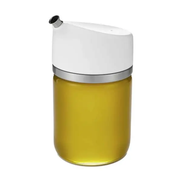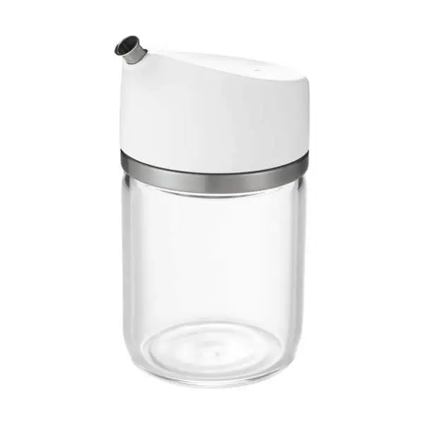 Oliedispenseren er fremstillet i borosilikatglas, som gør den yderst solid. Den kan derfor sagtens indgå i køkkenet, når madlavningen er på dit højeste og ingredienserne flyver om ørene. Med en silikonepakning er dispenseren helt drypfri og er perfekt til både olie, eddike og soya.
