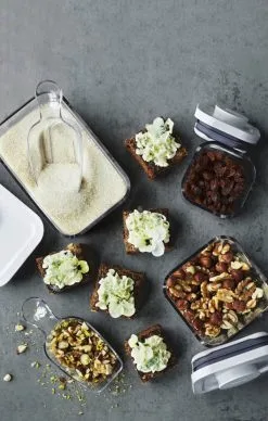 Beholderne er designet til modulopstilling, så du effektivt kan organisere dem på køkkenbordet eller i køkkenskabet. Derudover får du med POP-beholderne med deres firkantede og rektangulære former, det bedste ud af din lagerplads, mens boksens hjørner gør det let at hælde.