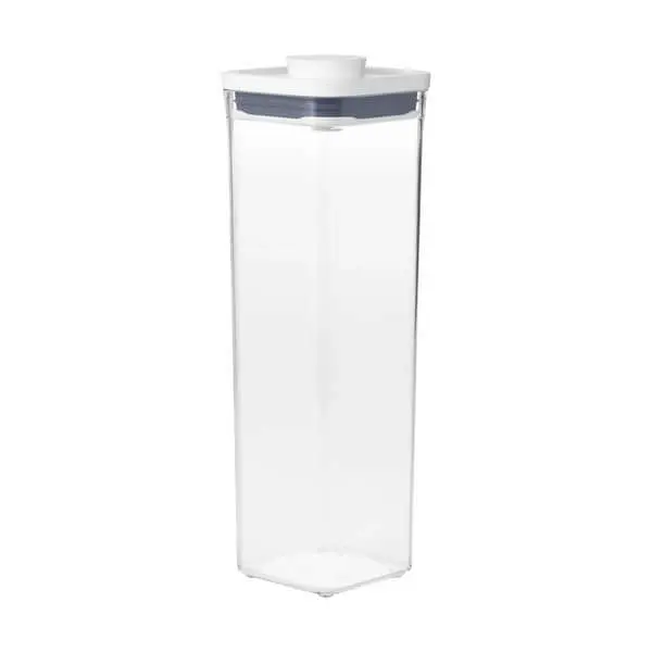 Den kvadratiske POP Container opbevaringsboks fra OXO er perfekt til opbevaring af spaghetti, grissini eller andre madvarer. Boksen kan indeholde 2,1 liter.