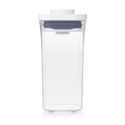 OXO POP Containers er en opbevaringsboks, som er perfekt til opbevaring af madvarer som eksempelvis mel, gryn, cornflakes, pasta, ris og lignende. Lukningen bliver lufttæt ved tryk på den store knap i låget. Knappen fungerer som håndtag, når du skal åbne boksen igen. Så nemt og simpelt.