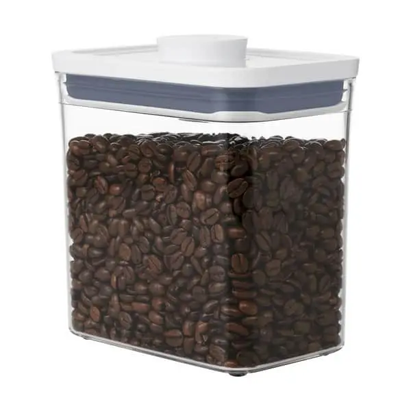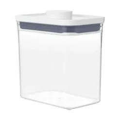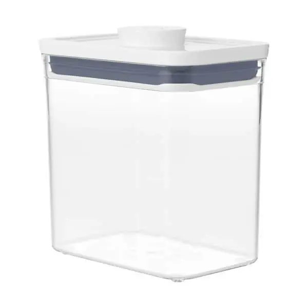 OXO POP Containers er en opbevaringsboks, som er perfekt til opbevaring af madvarer som eksempelvis mel, gryn, cornflakes, pasta, ris og lignende. Lukningen bliver lufttæt ved tryk på den store knap i låget. Knappen fungerer som håndtag, når du skal åbne boksen igen. Så nemt og simpelt.