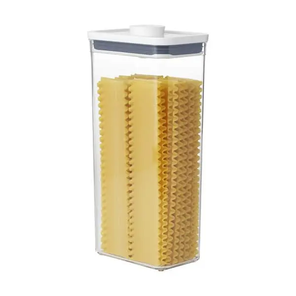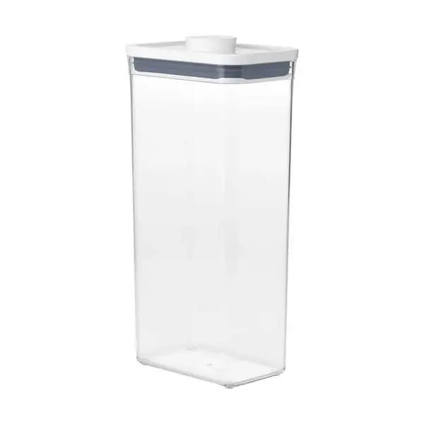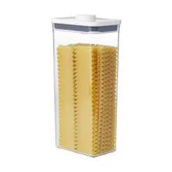 Den rektangulære POP Container opbevaringsboks fra OXO er perfekt til opbevaring af mel, sukker, pasta eller andre tørre madvarer. Boksen kan indeholde 3,5 liter.