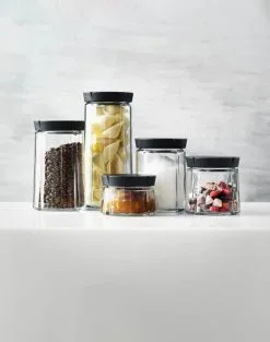 Praktiske og elegante opbevaringsglas fra Rosendahl Grand Cru til ris, pasta, marmelade, sukker og meget mere. Glassets låg sikrer en lufttæt opbevaring af indholdet og pynter med sin diskrete elegance både på bord og hylde.