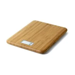 ECO er fremstillet af 86 % bambus og kun 2,5 % plastik, hvilket gør køkkenvægten yderst miljøvenlig. Foruden det miljøvenlige og naturlige design, har vægten et genopladeligt batteri, så du ikke behøver at bruge engangsbatterier, der er med til at skade miljøet.