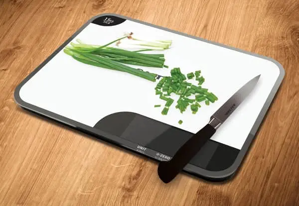 2-i-1: skærebræt og køkkenvægt
