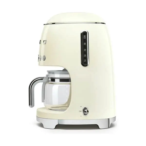 Med kaffemaskinen fra SMEG får du næsten lyst til at stå og kigge på, at den brygger din morgenkaffe, så du kan nyde synet af det smukke designelement i 50’er retro-stil, der pryder i dit køkken… Kaffemaskinen brygger filterkaffe lige, som du gerne vil have den.