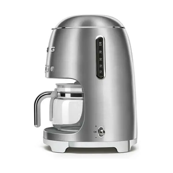 Med kaffemaskinen fra SMEG får du næsten lyst til at stå og kigge på, at den brygger din morgenkaffe, så du kan nyde synet af det smukke designelement i 50’er retro-stil, der pryder i dit køkken… Kaffemaskinen brygger filterkaffe lige, som du gerne vil have den.