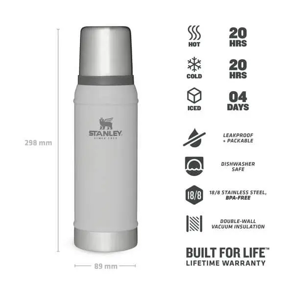 Uanset hvor turen går til, så er Stanley din uden tvivl din mest trofaste rejsepartner. Med sin ekstreme holdbarhed holder denne termoflaske dine drikkevarer varme eller kolde i op til 24 timer. Genialt til alt fra fisketuren til skituren – eller bare en lang dag på jobbet.