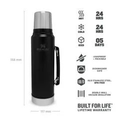 Denne termokop er en del af Stanleys Classic Series. Her finder du holdbare produkter, der er skabt til dig, der vil have godt kram med dig, når du er udendørs, på farten eller dyrker sport. Termokoppen her holder væsker varme i op til 5 timer, kolde væsker kolde i op til 6 timer og iskolde væsker iskolde i på til hele 26 timer.