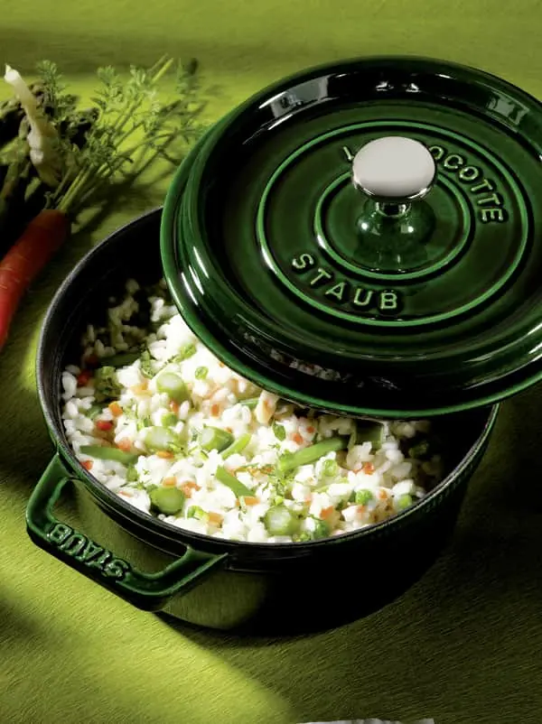 Klassisk støbejernscocotte fra Staub giver dig smagfulde madoplevelser takket være lågets specielle nedbørseffekt og knop-struktur, da dampen fordeler sig over maden under hele tilberedningen. Cocotten kan anvendes til tilberedning af simreretter eller andre hverdagsretter. Du kan også bage fantastisk grydebrød med sprød bund og skorpe i denne cocotte.