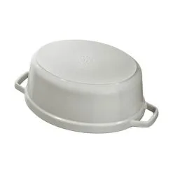 Klassisk støbejernscocotte, i farven “white truffle”, fra Staub giver dig smagfulde madoplevelser takket være lågets specielle nedbørseffekt og knop-struktur, da dampen fordeler sig over maden under hele tilberedningen. Cocotten kan anvendes til tilberedning af simreretter eller andre hverdagsretter. Du kan også bage fantastisk grydebrød med sprød bund og skorpe i denne cocotte.