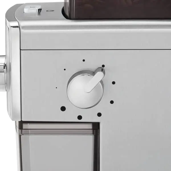 Kaffekværnen er aromabevarende og giver dig fremragende kaffe. Kaffemængden er justerbar til mellem 2 til 10 portioner. Du kan indstille kværnet fra groft til fint (17 niveauer i alt). Beholderen kommer med låg og har plads til 180 g. Det kværnede kaffe kommer i en aftagelig beholder, som også har låg.