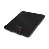 Køkkenvægten tændes og slukkes på sensorberøringsskærmen og slukker automatisk, når den ikke er i brug. Desuden forbliver det indbyggede LCD-display synligt, selv når du vejer store mængder ingredienser, grundet den store flade. Køkkenvægten indeholder et genopladeligt batteri, som oplades via et USB-kabel – så slipper du for at rode med batterier, som du desuden kan løbe tør for.